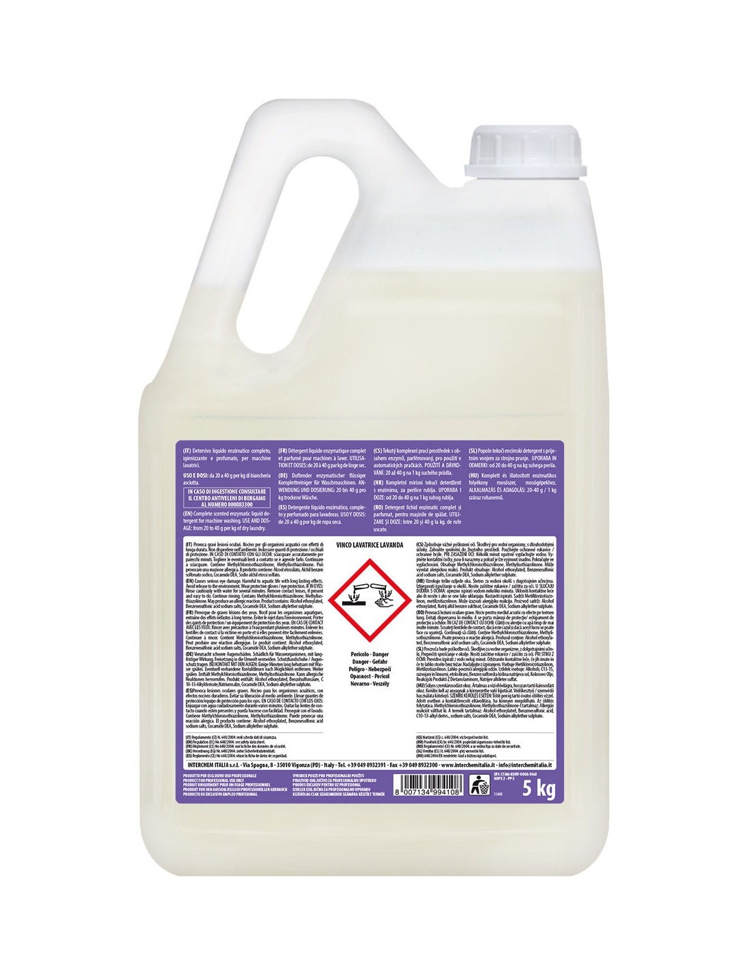 Il Detersivo Lavatrice Lavanda 5 kg è formulato con una miscela di enzimi ad alte prestazioni che agiscono in profondità sulle fibre dei tessuti, rimuovendo efficacemente sporco quotidiano, macchie di origine organica, residui di grasso e cattivi odori. È indicato per l’utilizzo in lavatrici industriali e tradizionali, garantendo risultati costanti e affidabili anche in cicli intensivi e continuativi. -