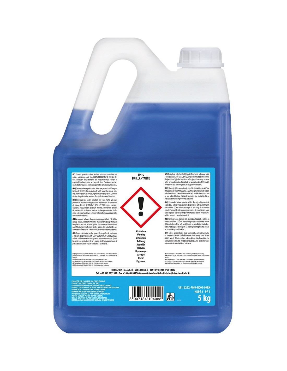 Formato da 5 kg: Confezione pratica e conveniente per ambienti ad alto volume di lavaggi.