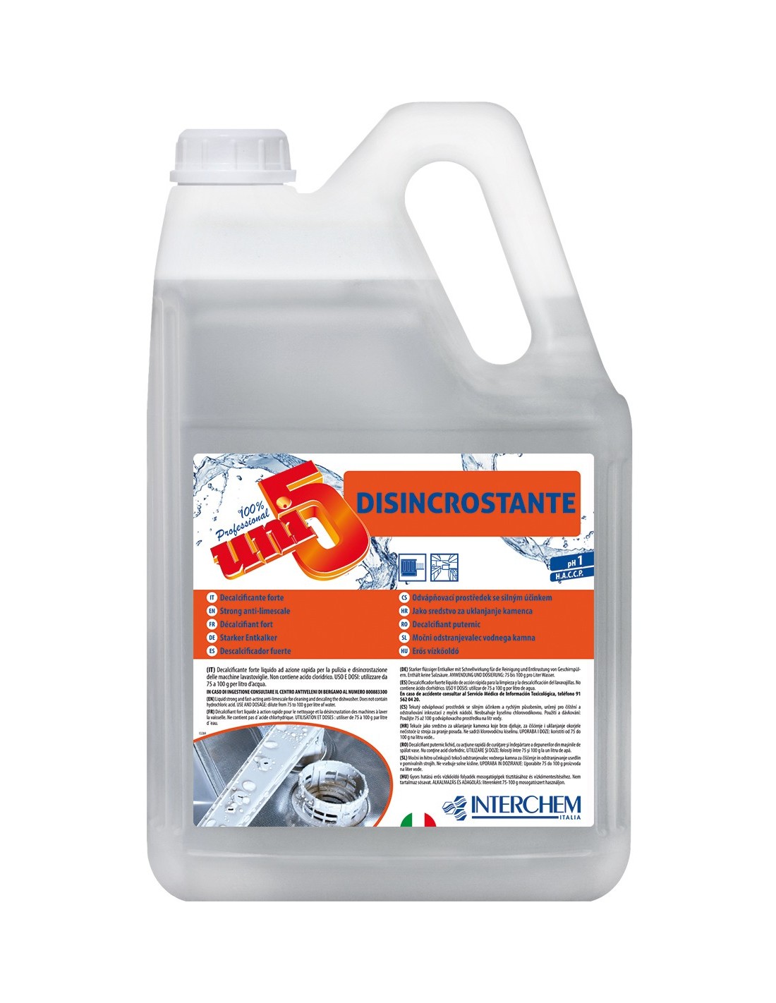 Il Disincrostante Lavastoviglie 5 kg è un detergente disincrostante rapido fortemente acido, formulato per la rimozione efficace di calcare, residui minerali e incrostazioni tenaci che si accumulano nel tempo all’interno di lavastoviglie e lavatazzine professionali. È la soluzione ideale per garantire il corretto funzionamento delle macchine, prolungarne la durata e mantenere elevati standard di igiene e prestazioni di lavaggio.