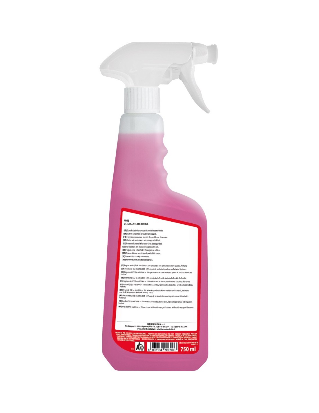 Il formato spray da 750 ml lo rende comodo da utilizzare in ogni situazione, permettendo un’applicazione mirata e senza sprechi. È la soluzione ideale per chi cerca un detergente versatile, sicuro e pronto all’uso per la pulizia quotidiana di ambienti professionali e domestici.