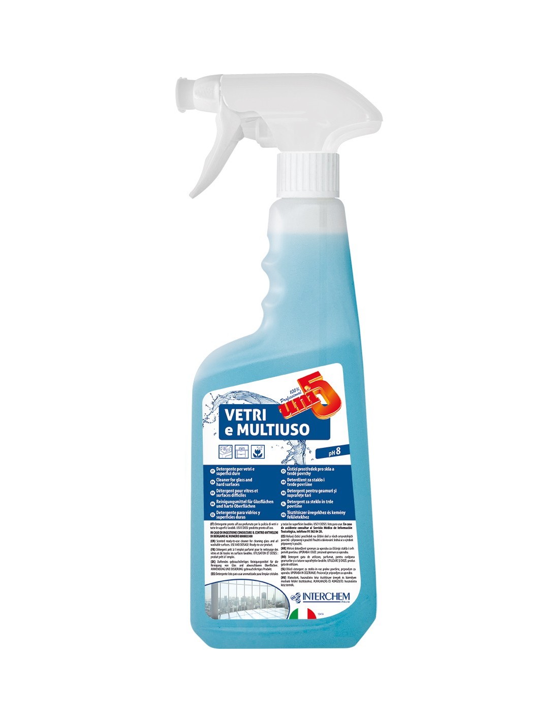 Detergente Vetri e Multiuso: Pronto all’uso, efficace su vetri, specchi e superfici dure lavabili.